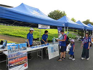 リニア中央新幹線建設促進山梨県期成同盟会は、2025年4月29日(火・祝)及び8月23日(土)に、JITリサイクルインクスタジアムで開催されたJ2リーグ・ヴァンフォーレ甲府のホームゲーム開催に合わせ、スタジアム前にリニア建設促進をアピールするブースを出展しました。